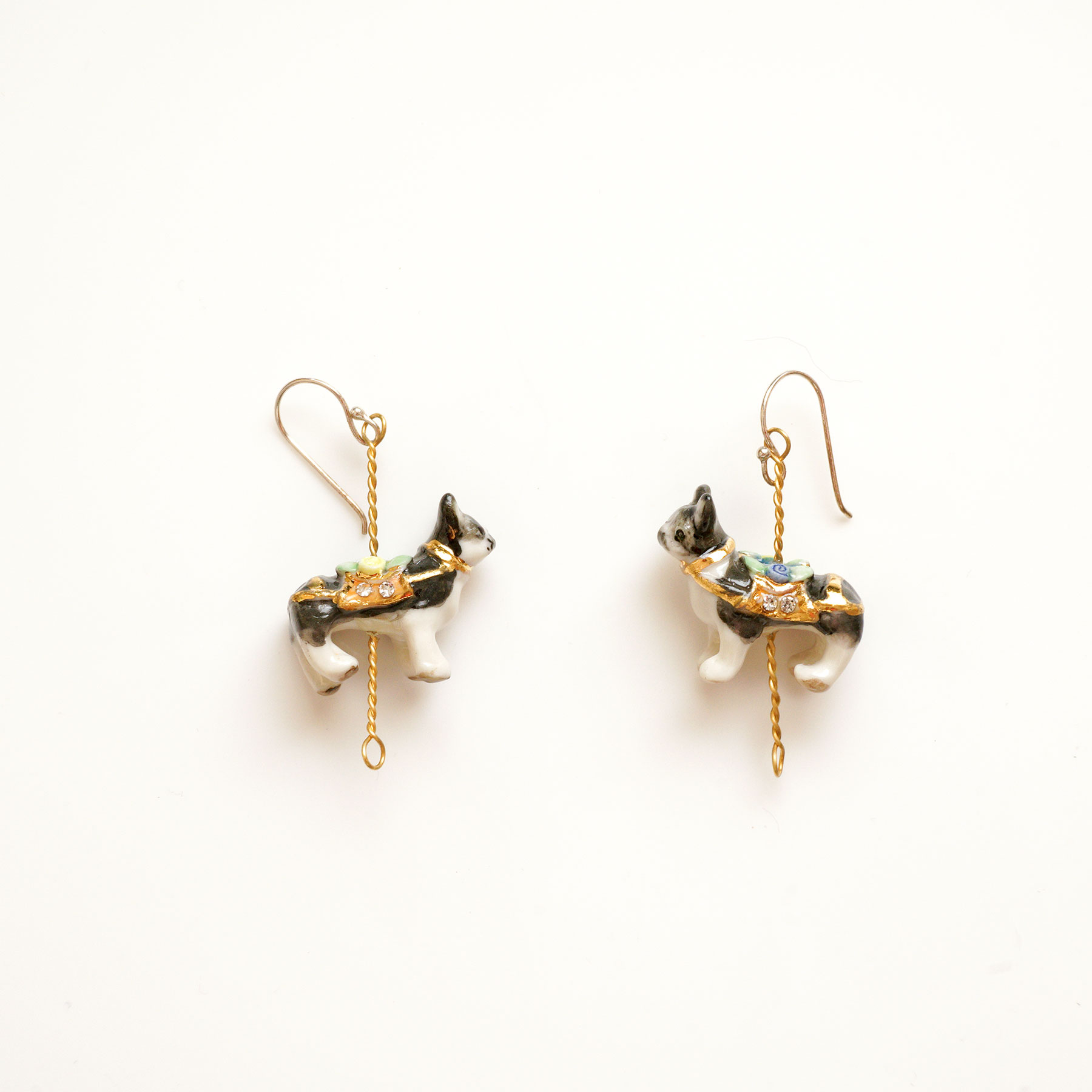 These porcelain french bulldog earrings are handmade and hand painted.