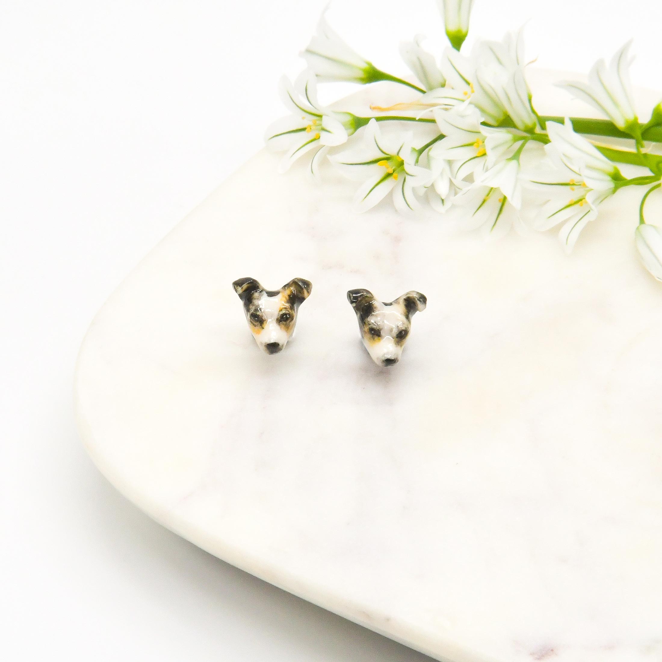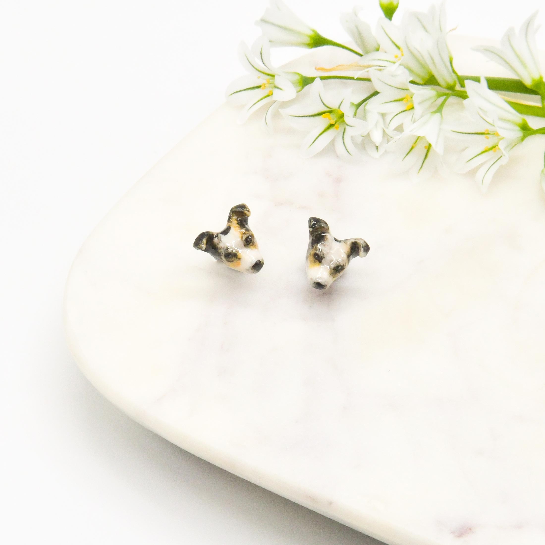 These Porcelain Jack Russel Stud earrings are very cute and fun to wear.