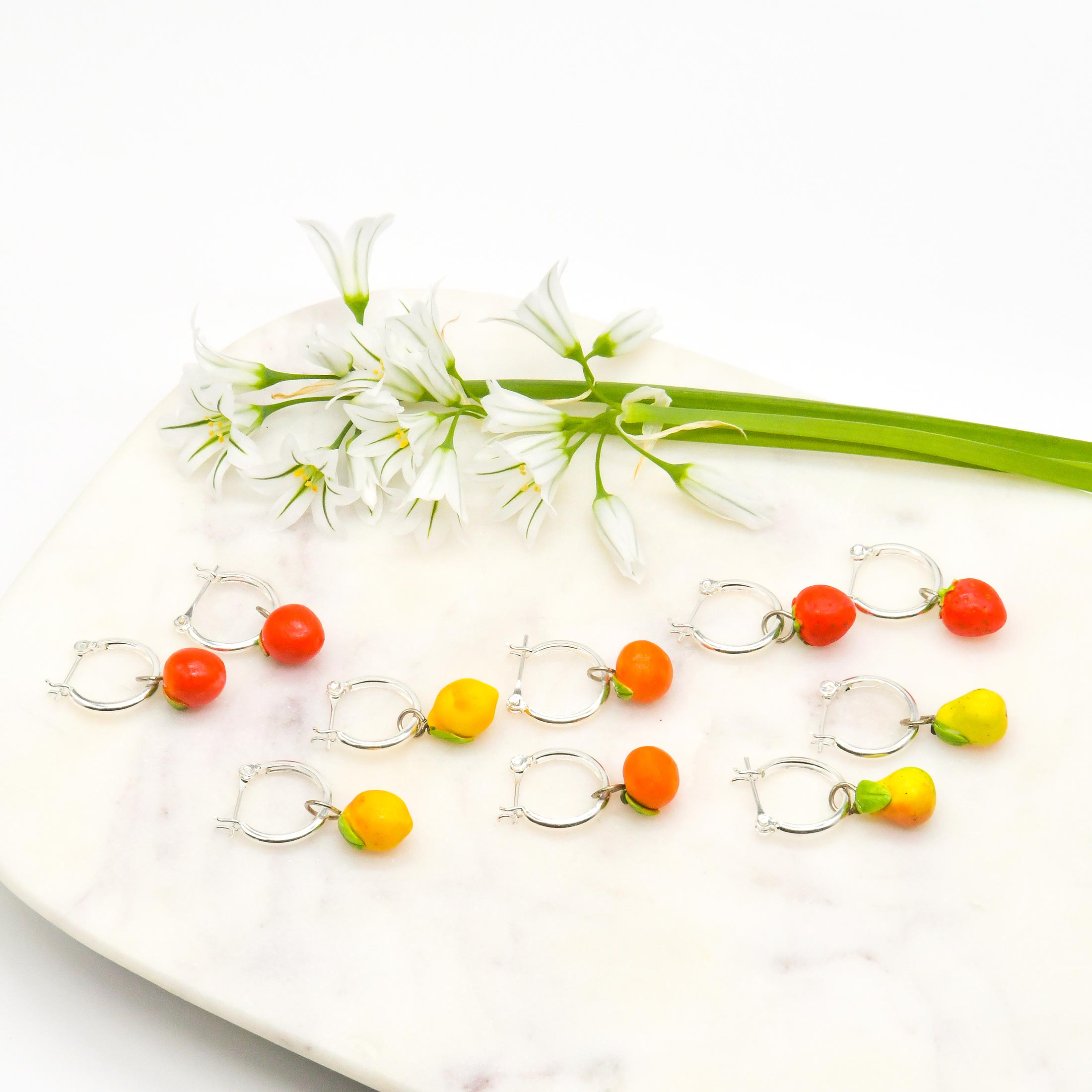Porcelain Fruit hoop earring in Lemon, Strawberry, Orange, Apple and Pear