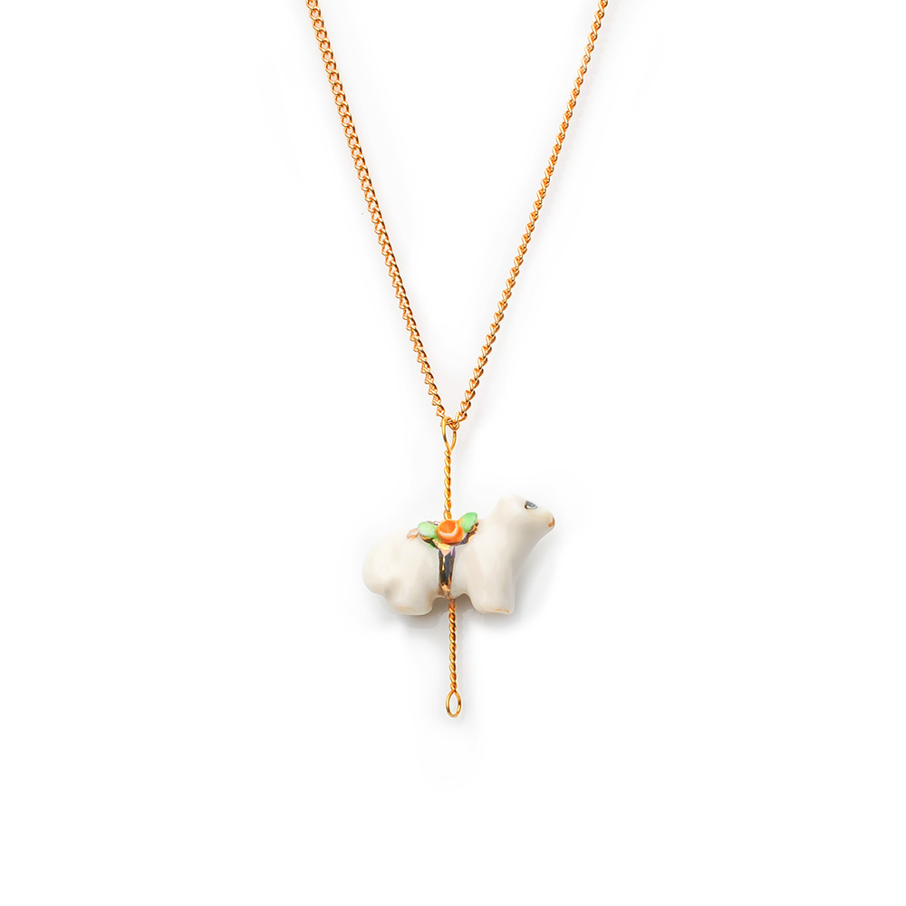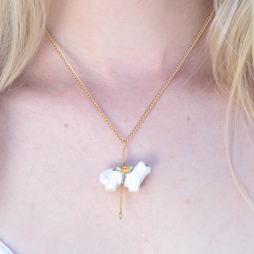 The sweet porcelain pendant in a small Persian design with 18″ gold plated chain.