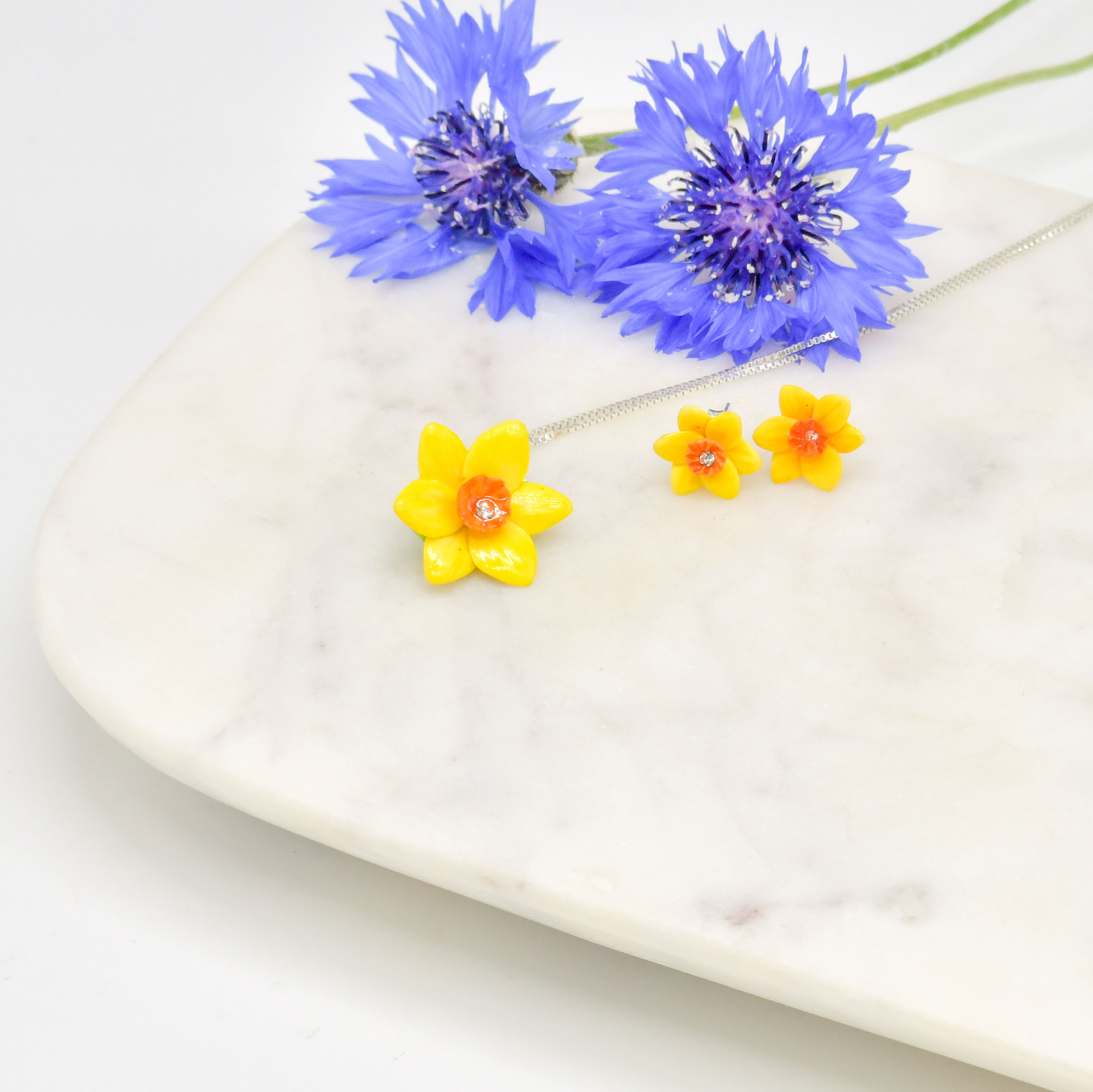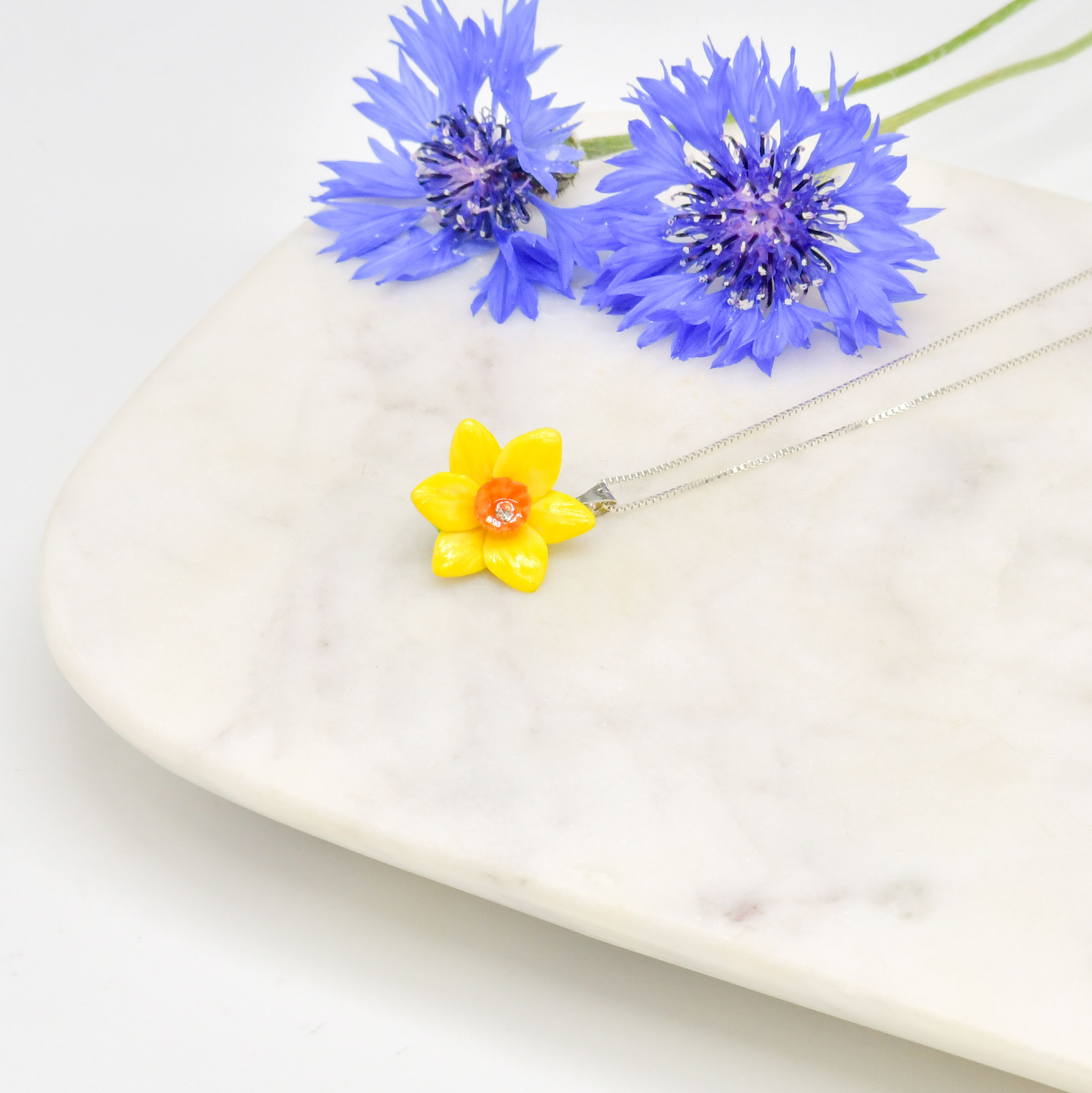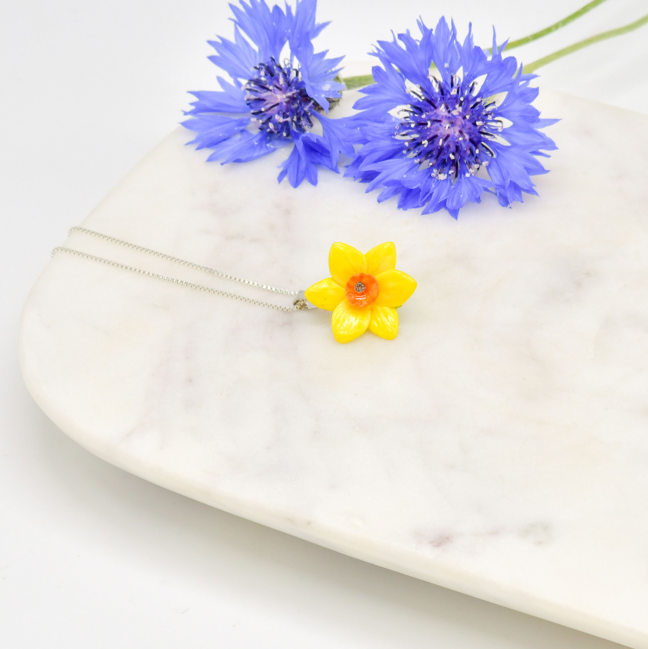 Porcelain Yellow Narcissus pendant with sterling silver necklace
